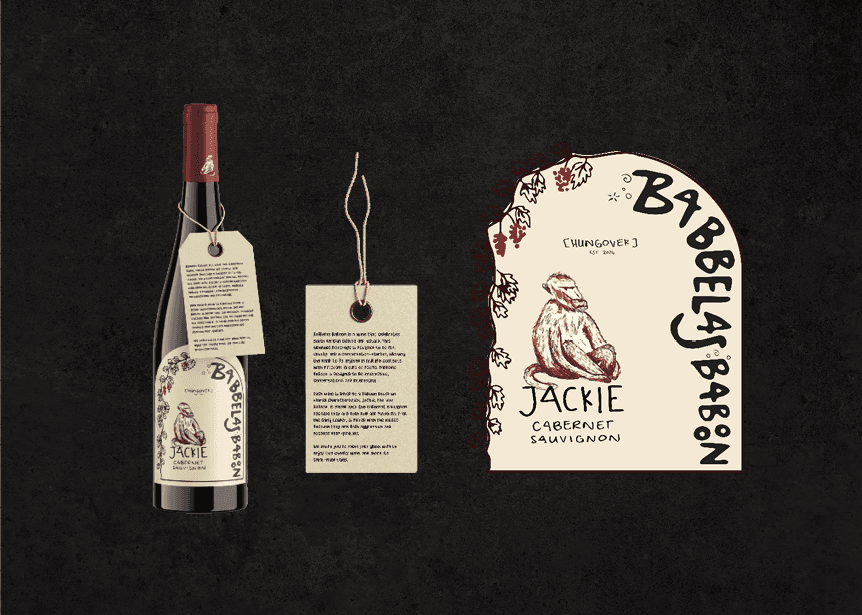 Babbelas Baboon is a wine that celebrates South African culture and history. This alcoholic beverage is designed to be fun, cheeky, and a conversation-starter, allowing the drink to be enjoyed in multiple contexts with different groups of people. Babbelas Baboon is designed to be interactive, conversational and interesting.